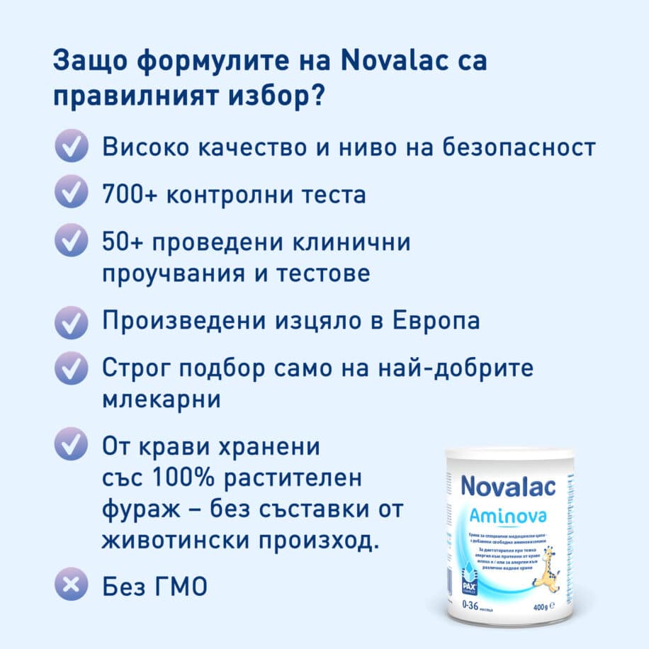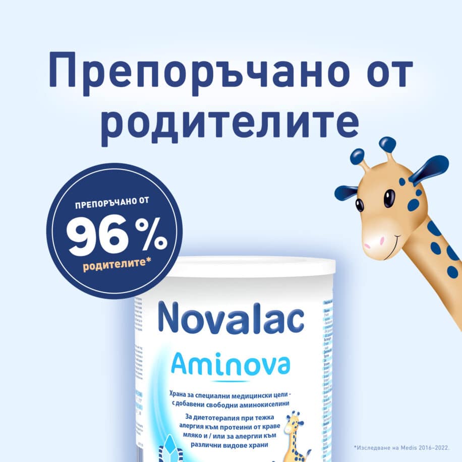 Novalac Aminova, мляко за кърмачета и малки деца с тежка алергия към краве мляко, с или без повръщане
